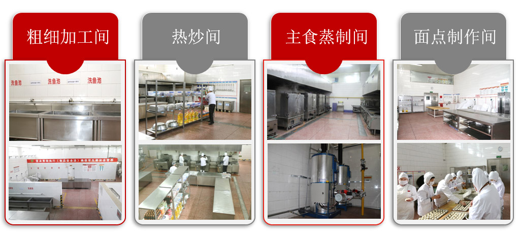 黑白体育拥有6000多平方米的生产配送基地,采用中央厨房生产化作业,设有机械化粗细加工车间、配餐分装生产线、餐具洗消线、冷冻、保鲜库房、以及专业化较强的食品加工布局和生产工艺流程。